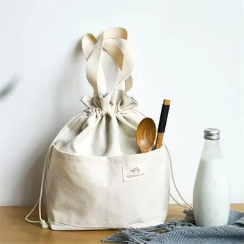 حقيبة نسائية من القماش برباط من القطن بسعة كبيرة مقاومة للماء معزولة حقيبة طعام لغداء حراري للأطفال