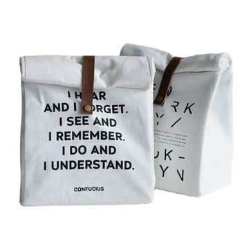 حقائب صغيرة بيضاء للوجبة من الجلد والقطن الناعم، حقيبة وجبة الغداء المعزولة القابلة للطي والحمل